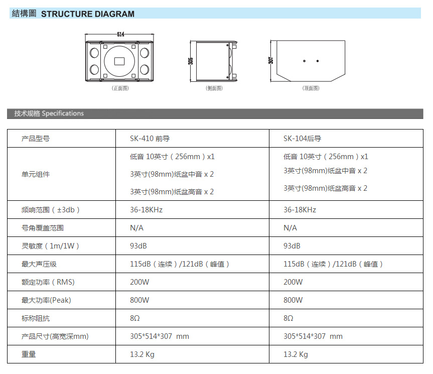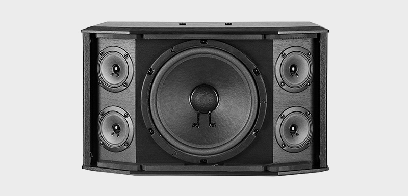 是一款專為KTV包廂設計的3分頻全頻音箱,它使用了1個12英寸低音單元、2個3英寸紙錐中音和2個3英寸紙錐高音。